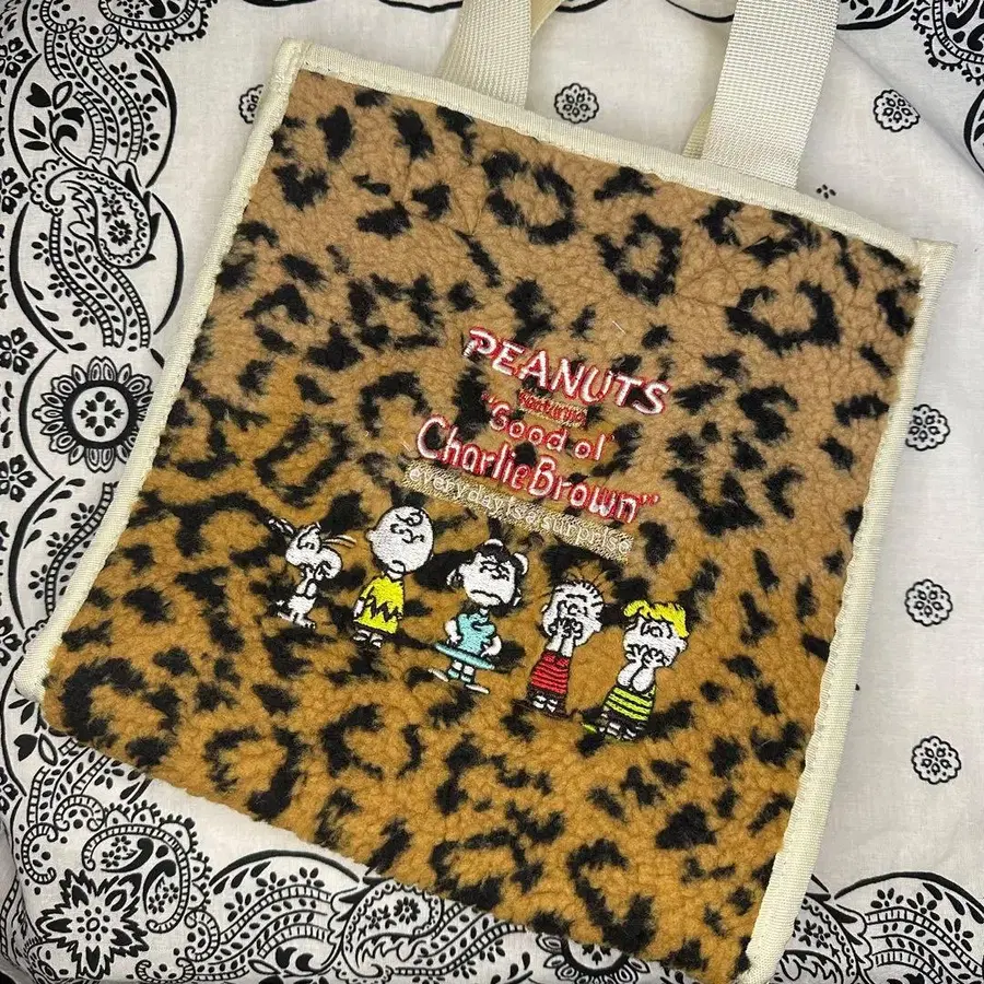 스누피 PEANUTS 레오파드 무늬 백 토트백