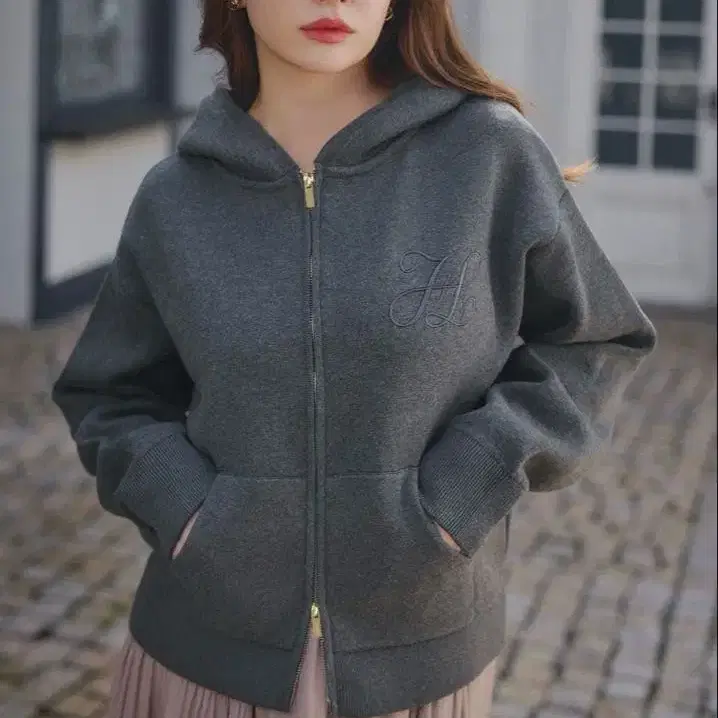 한 번 착용 herlipto Smooth Knit Hoodie gray