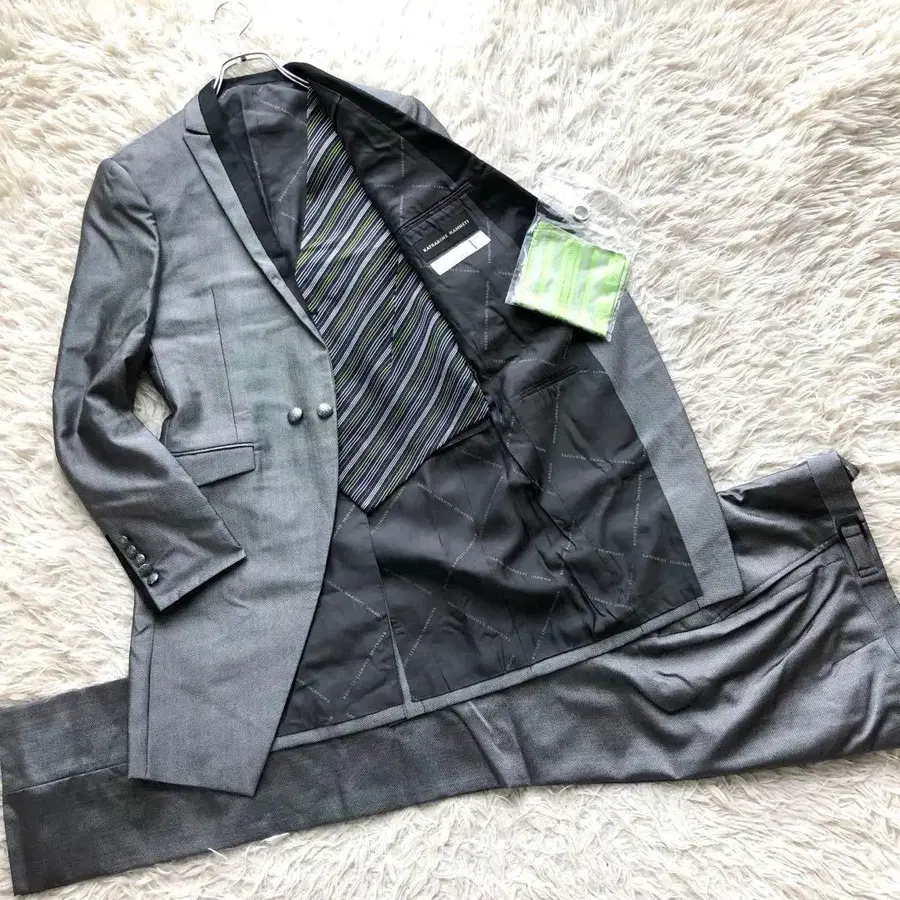[미사용급 3피스] 캐서린 햄넷 턱시도 실버 모 털 실크