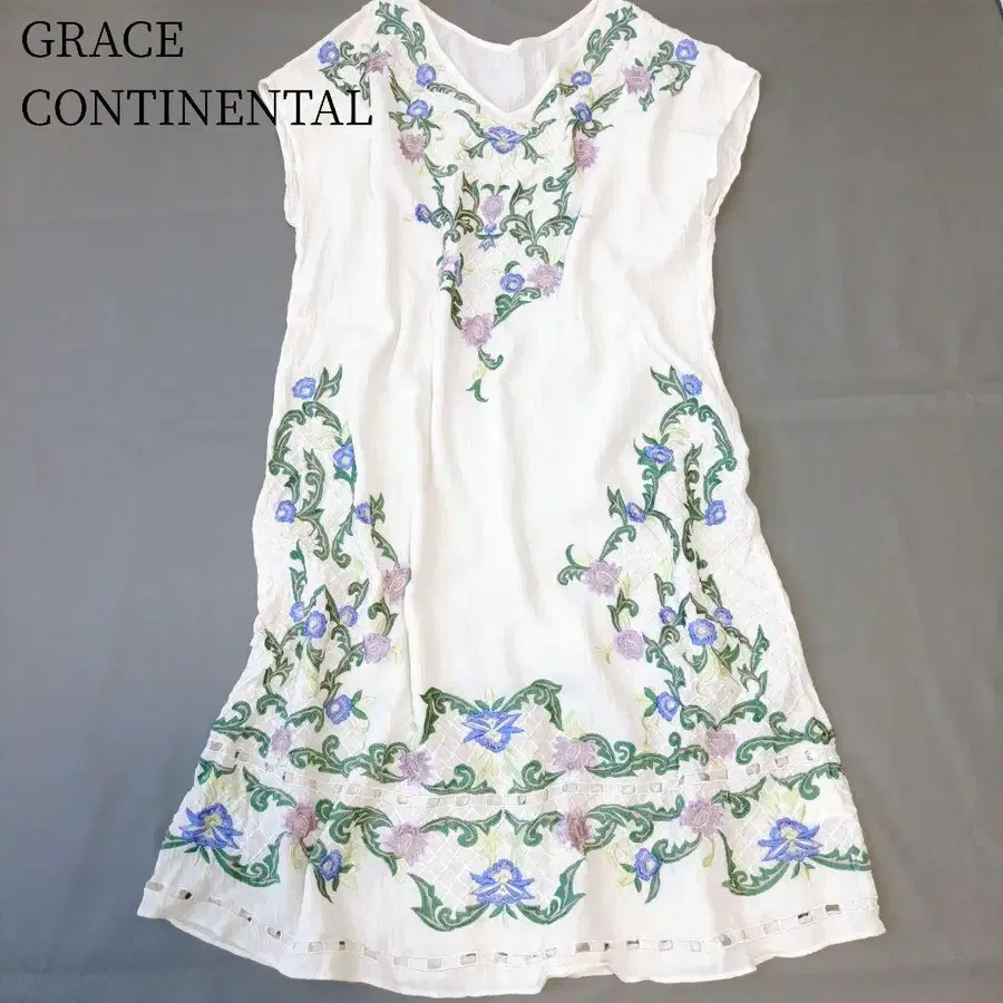 [ 그레이스 콘티넨탈 ] 플라워 컷워크 원피스 꽃무늬 자수 린넨 면