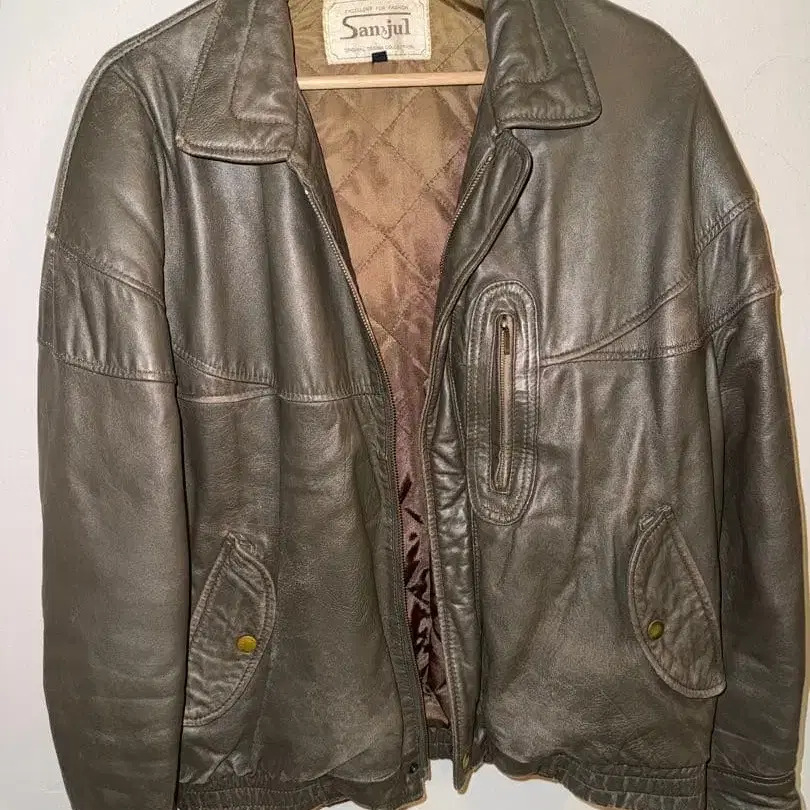 [ 90s ] 천연 가죽 레더 플라이트 자켓 카키 M 양가죽 빈티지