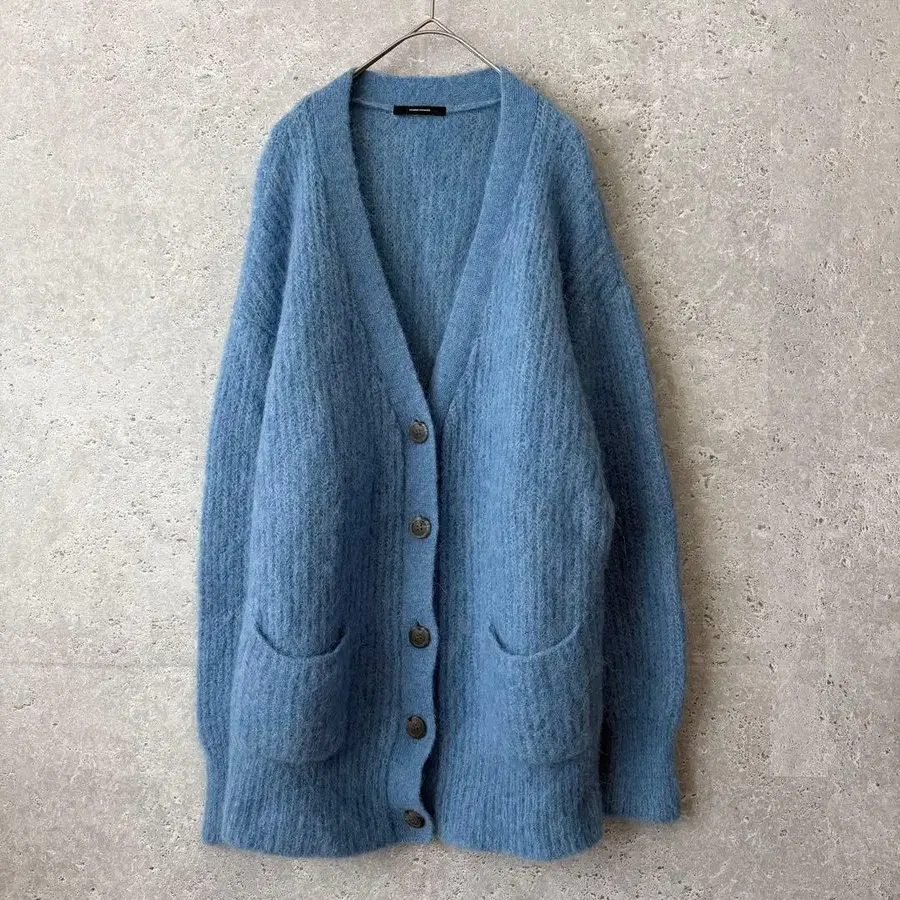 V넥 니트 가디건 알파카 퍼 부드러운 포근한 블루 라이트 블루 포켓 프리 사이즈