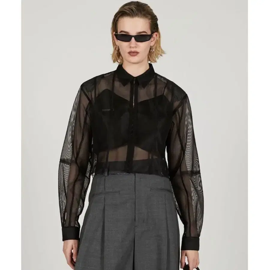 PRANK PROJECT 시어 뷔스티에 레이어드 메쉬 셔츠 블랙
