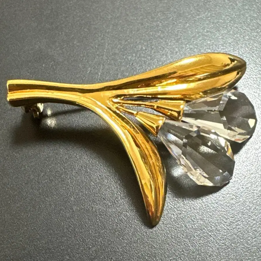스와로브스키 브로치 꽃 모티브 골드 컬러 새상품급
