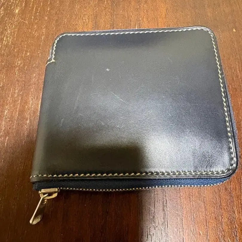 만소 브라이들 레더 라운드 이단 접이식 지갑 네이비