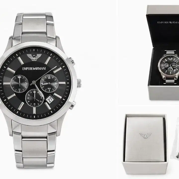 자동 번역되었어요. 원문보기스테인리스 스틸 소재의 블랙 다이얼, 크로노그래프 기능이 있는 엠포리오 아르마니 손목시계입니다.