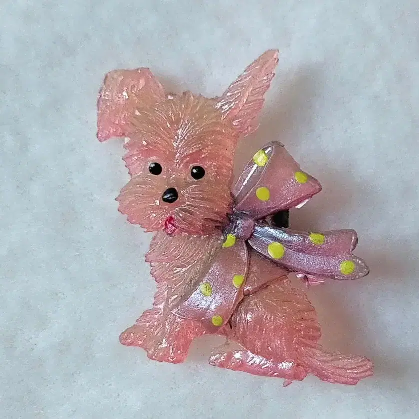 [앤티크] 핑크색 큰 리본 강아지 브로치