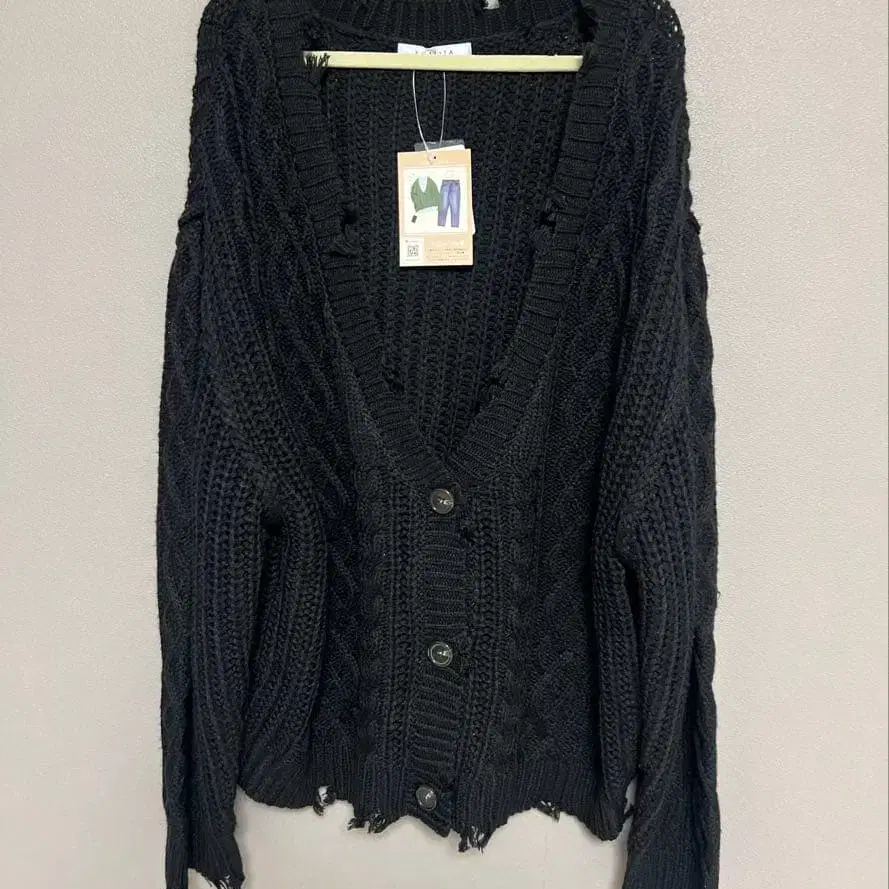 하리타 케이블 가디건 데미지 가공 루즈핏 블랙 M