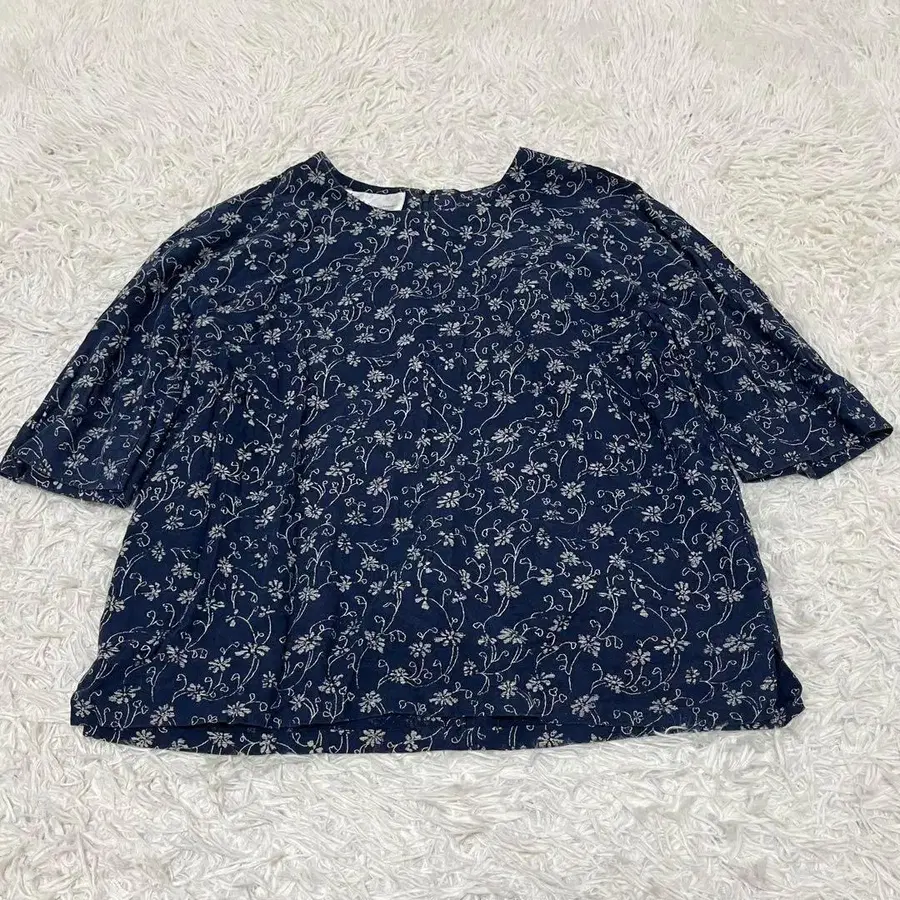 사카토쿄코 실크 코튼 꽃무늬 칠부 소매 네이비