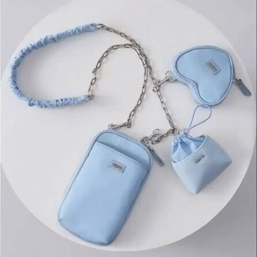 FURFUR 라이트 블루 숄더백 하트형 파우치 포함