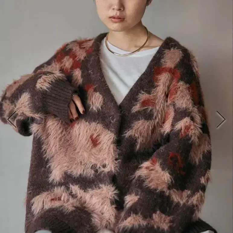 LEPSIM 5게이지 패턴 샤기 V넥 가디건 브라운