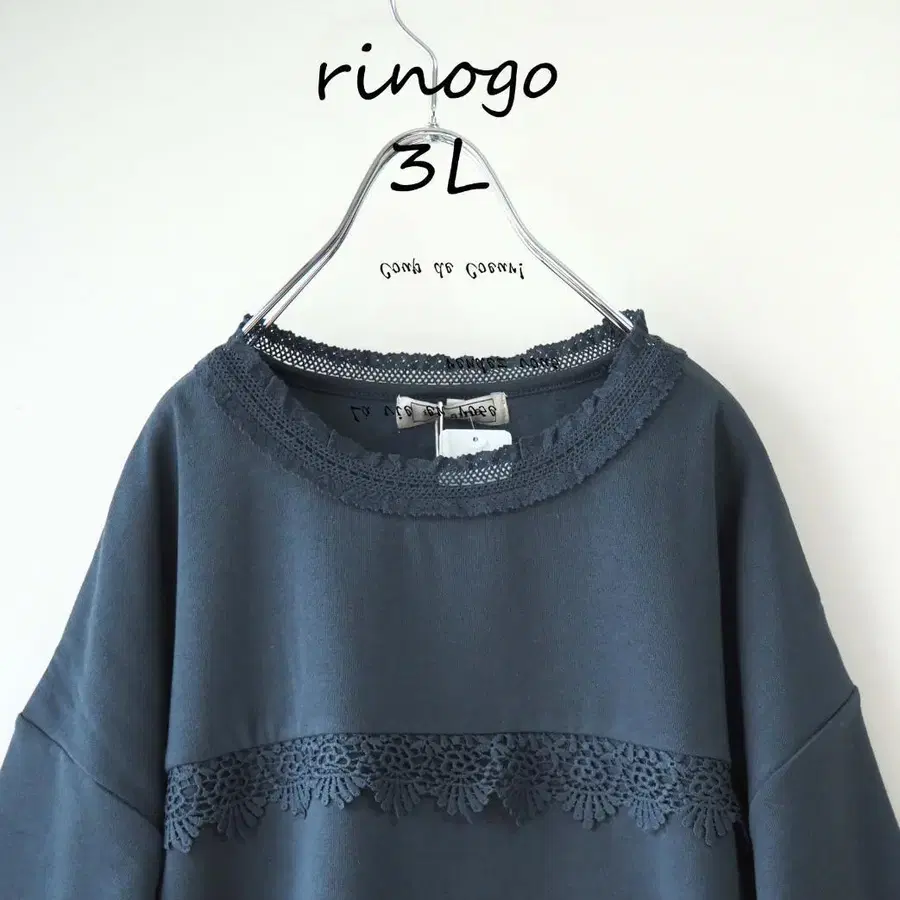 새상품할인*3L 네이비 계열*레이스 사용 페미닌 맨투맨 속기모 빅 사이즈