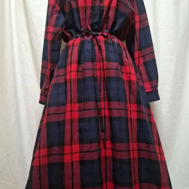 일본제 면 린넨 빅 타탄 플레어 원피스