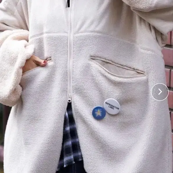 시선을 사로잡는 이종 소재의 조합이 개성을 돋보이게 하는 플리스 자켓.