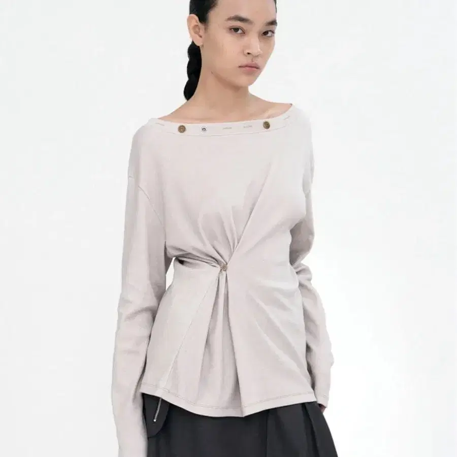 MILLO WOMEN Button Mix T-Shirt [Beige]