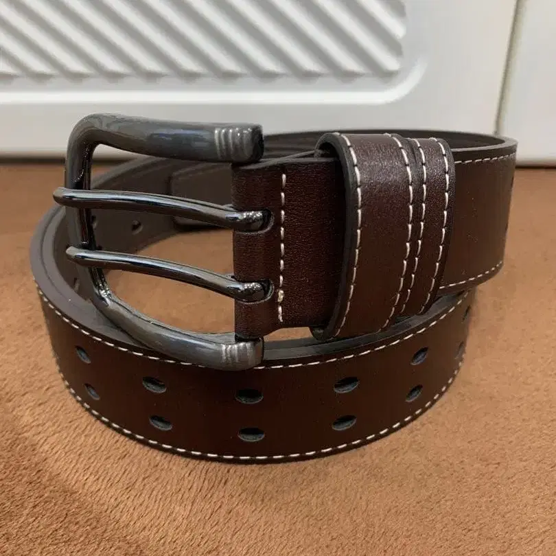 벨트 남성용 다크 브라운 2홀 인조 가죽 PU 심플 캐주얼