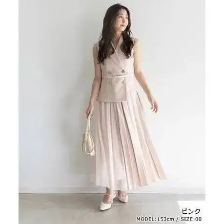 RANDA 자켓 라이크 플리츠 레이어드 원피스 핑크 S