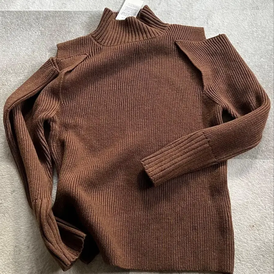 Ungrid 브라운 터틀넥 스웨터 어깨 트임