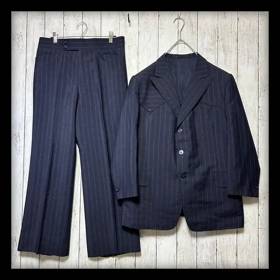 [ 새상품급 빈티지 수트 셋업 ] 네이비 스트라이프 레트로 M