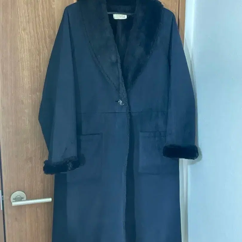 즉시 배송 다크 네이비 롱 무스탕 코트