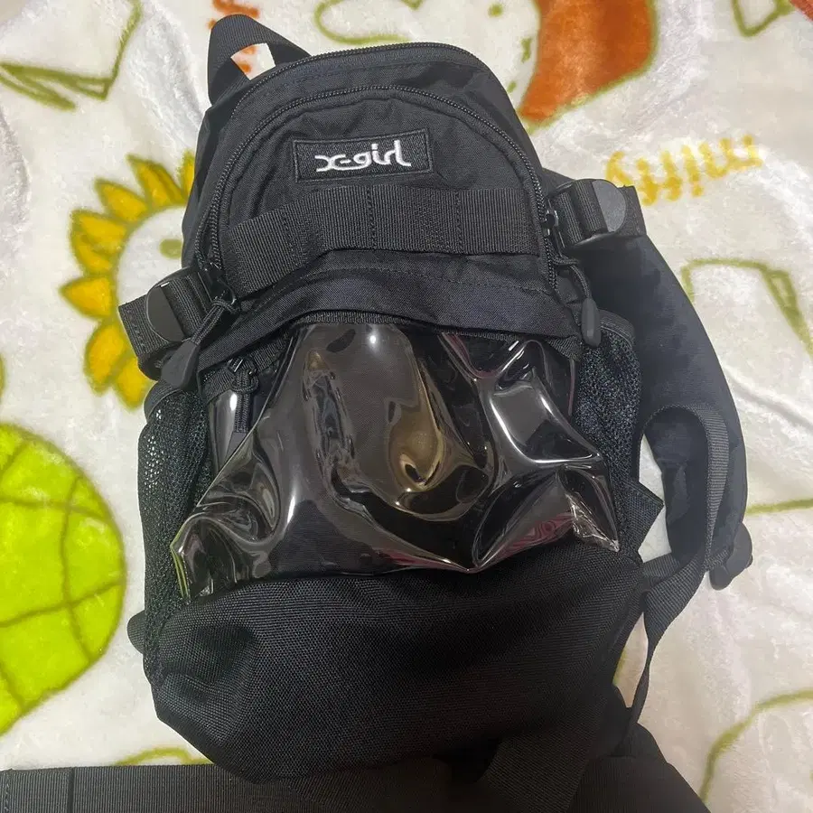 x-girl 블랙 미니 백팩 투명 포켓 부착