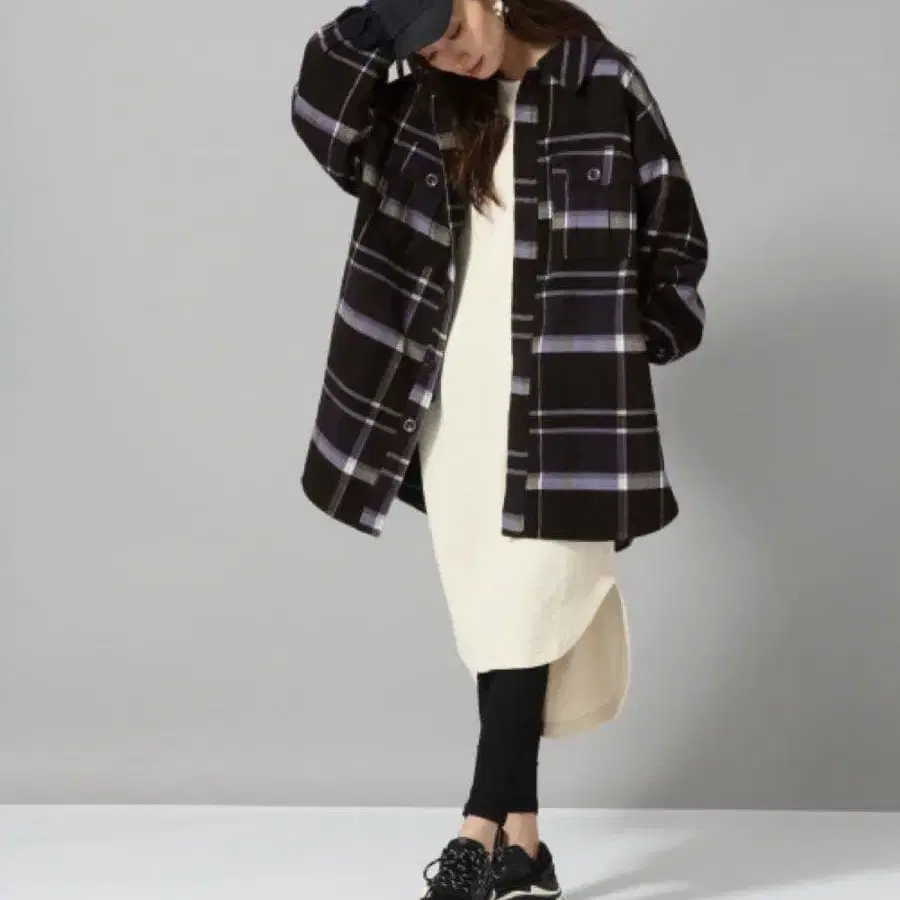 택 포함 새상품 JEANASIS 트위드 체크 BIG 셔츠 코트