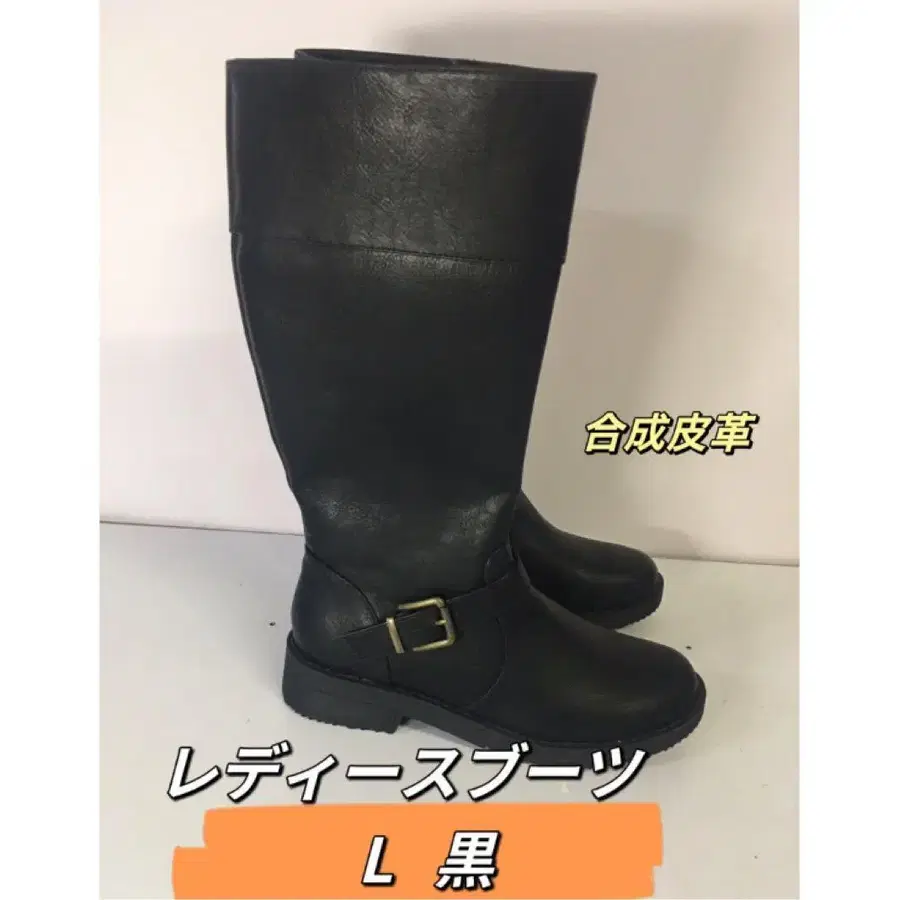 자동 번역되었어요. 원문보기합성 피혁 소재의 블랙 롱 부츠, 백 지퍼와 금장 장식 벨트가 특징입니다.