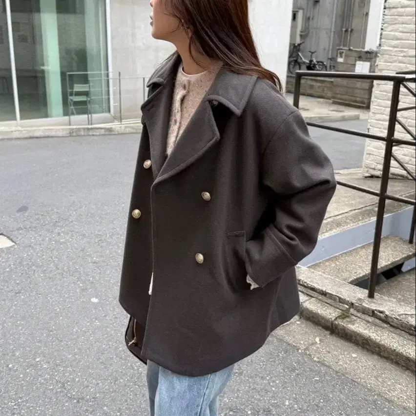 숏 기장 울 100% 코트
