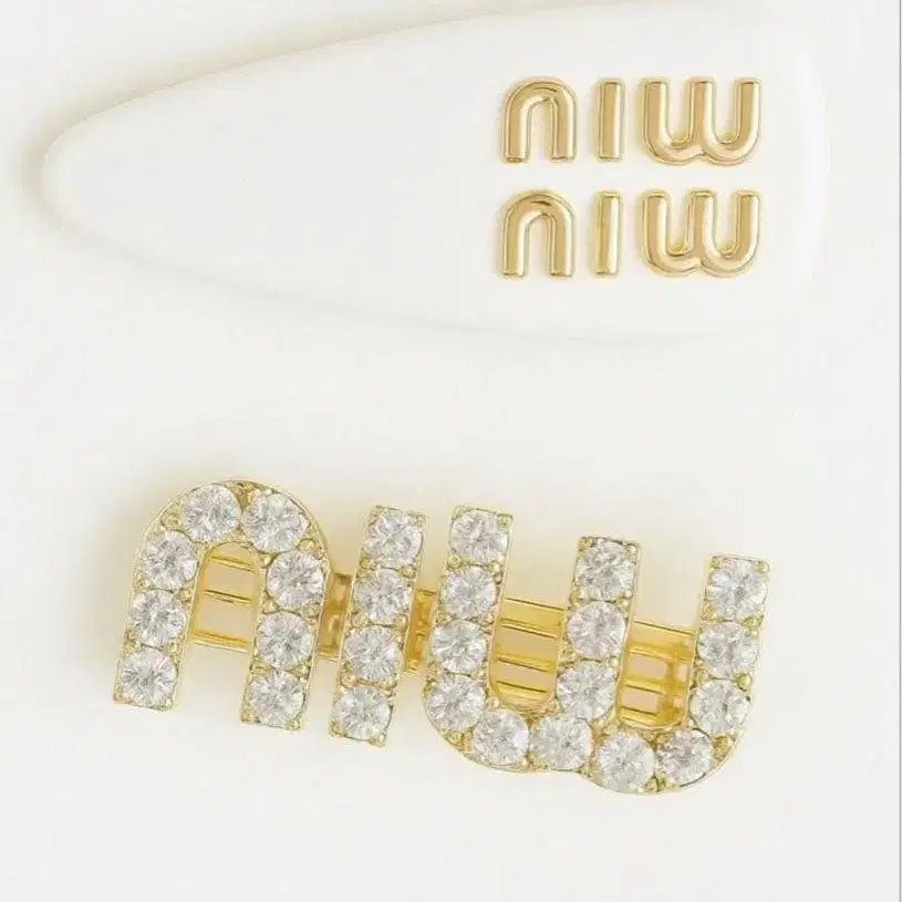 화이트 골드 2개 세트 귀여운 miu 로고가 특징적인 헤어 머리핀
