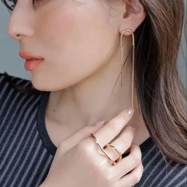 길이가 다른 체인 디자인이 특징인 귀걸이입니다.