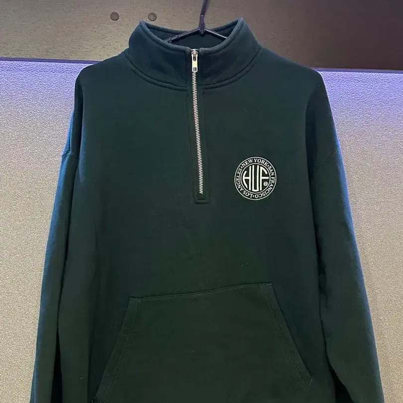 인기 스트릿 브랜드 HUF (하프)의 하프 지퍼 맨투맨입니다.