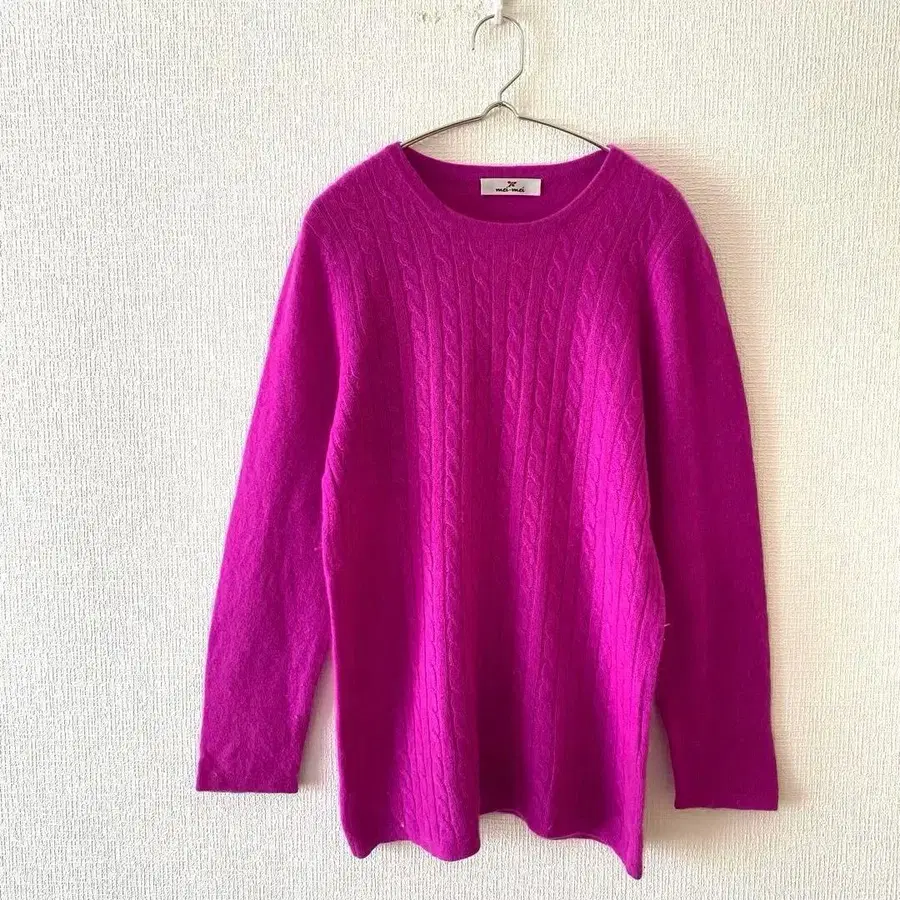 [메이메이] 니트 스웨터 캐시미어 100% 케이블 짜임 긴팔 M 상당