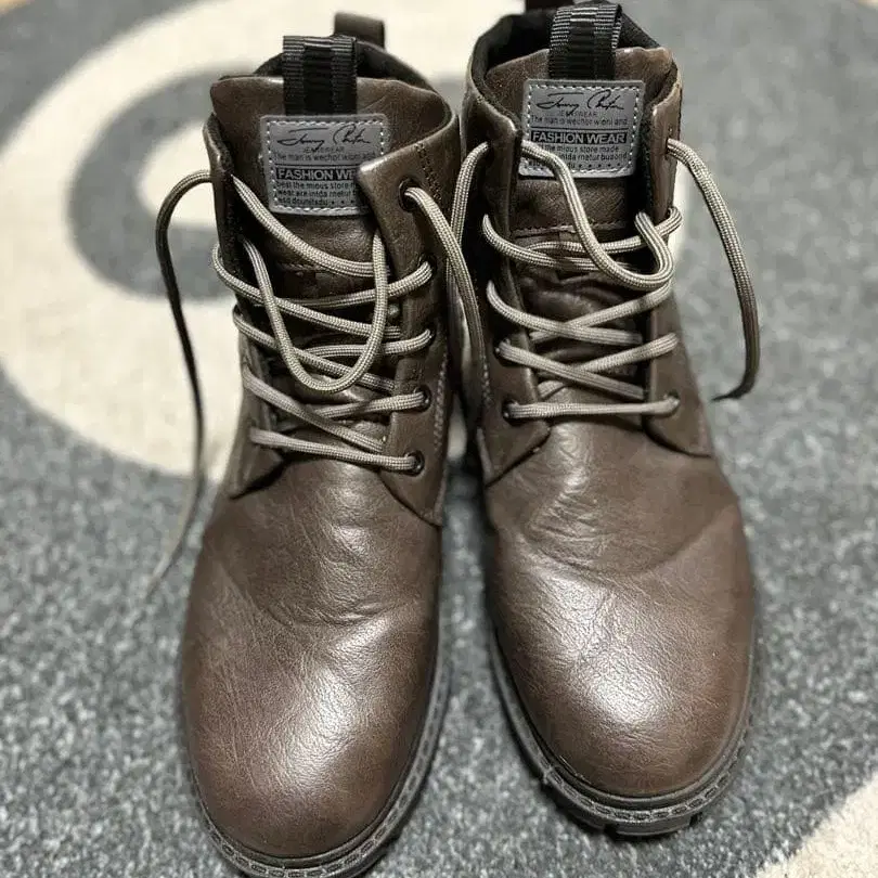 브라운 가죽 하이컷 워크 부츠