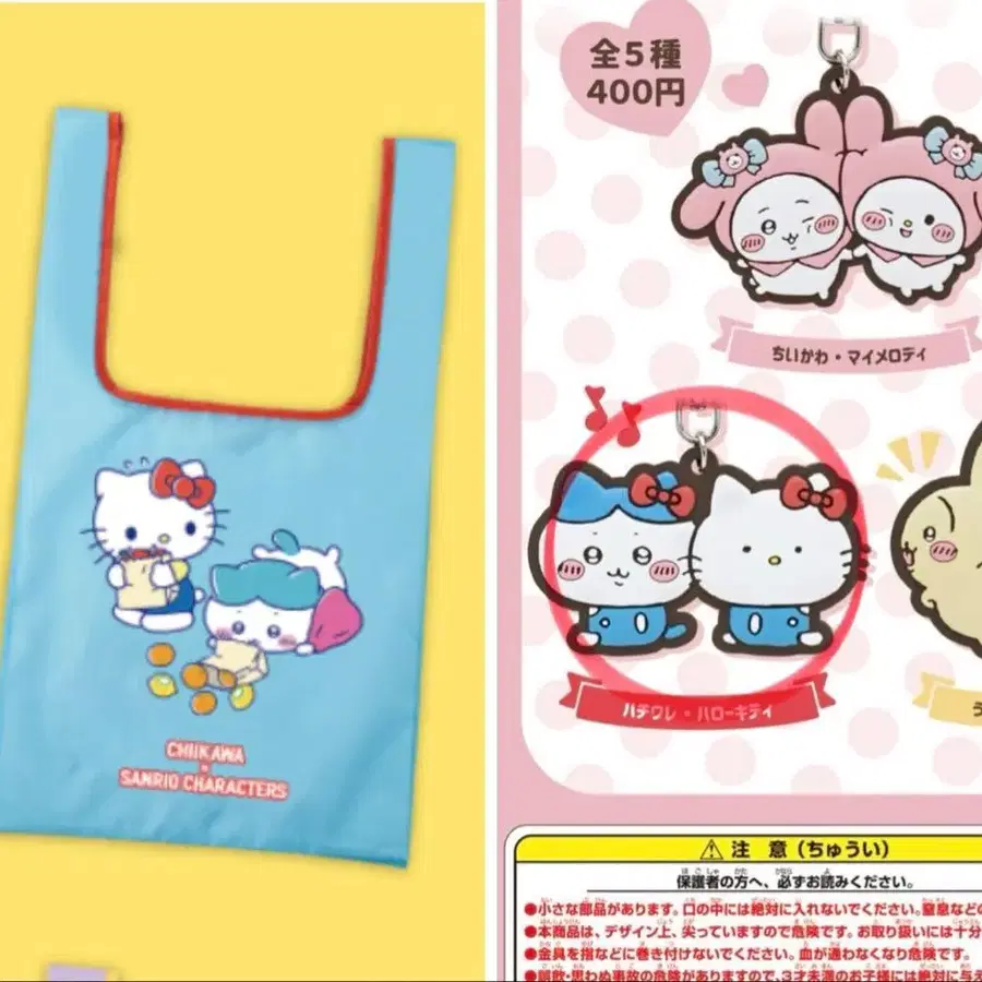 하치와레 x 헬로키티 에코백과 러버 마스코트