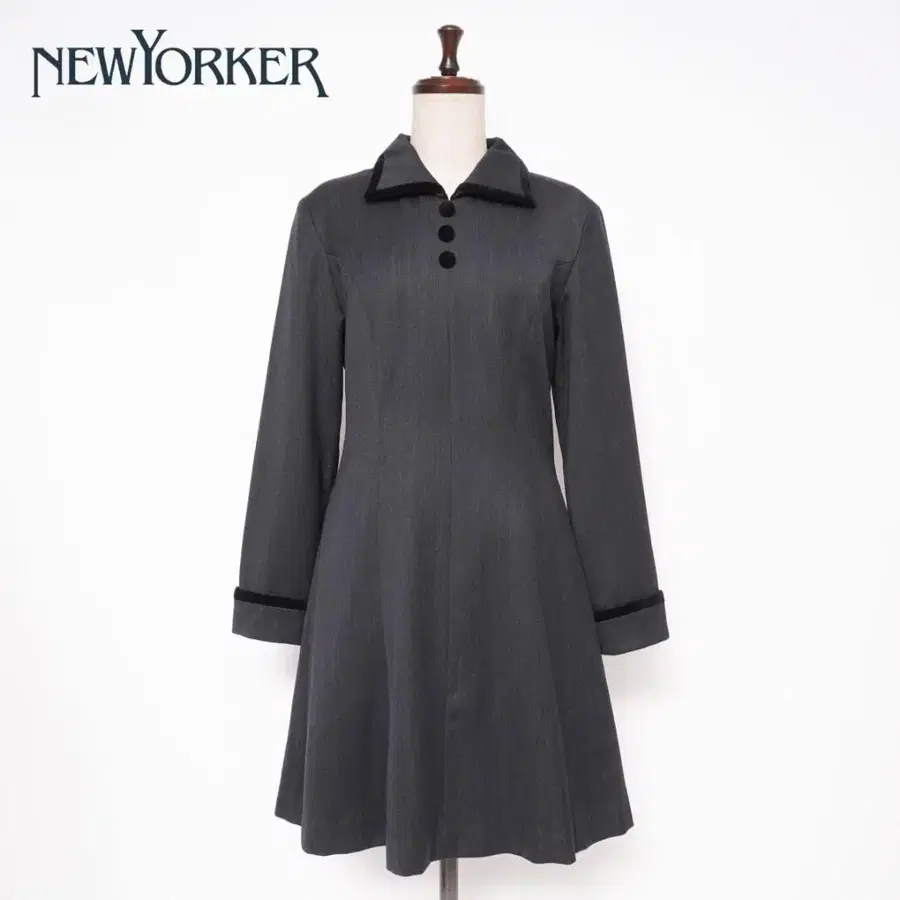 자동 번역되었어요. 원문보기새상품급 NEW YORKER 뉴요커 울 100% 싸개 버튼 A라인 원피스 무릎 기장 여성용 차콜 그레이 사이즈 9*CD1024