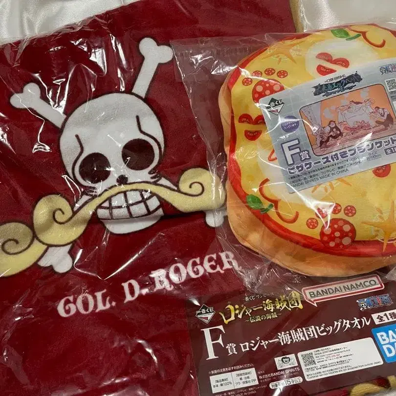 원피스 제일복권 F상 세트 로저 해적단 피자 케이스 포함 담요
