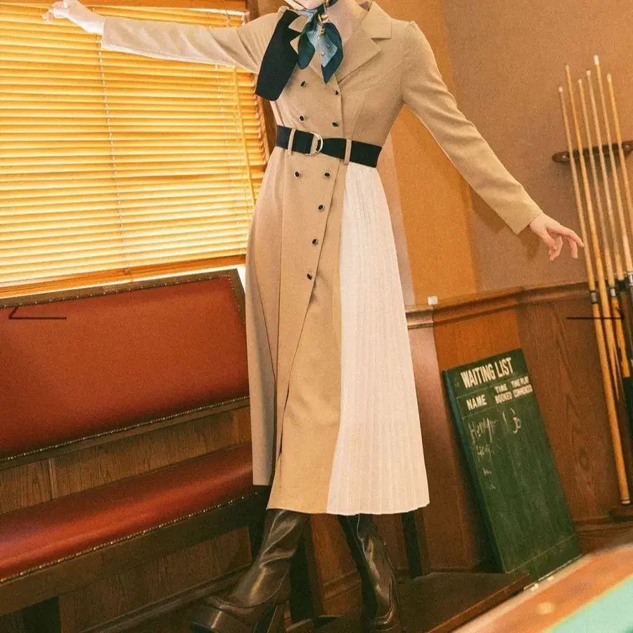 레이디 아젤 바이컬러 플리츠 트렌치 원피스