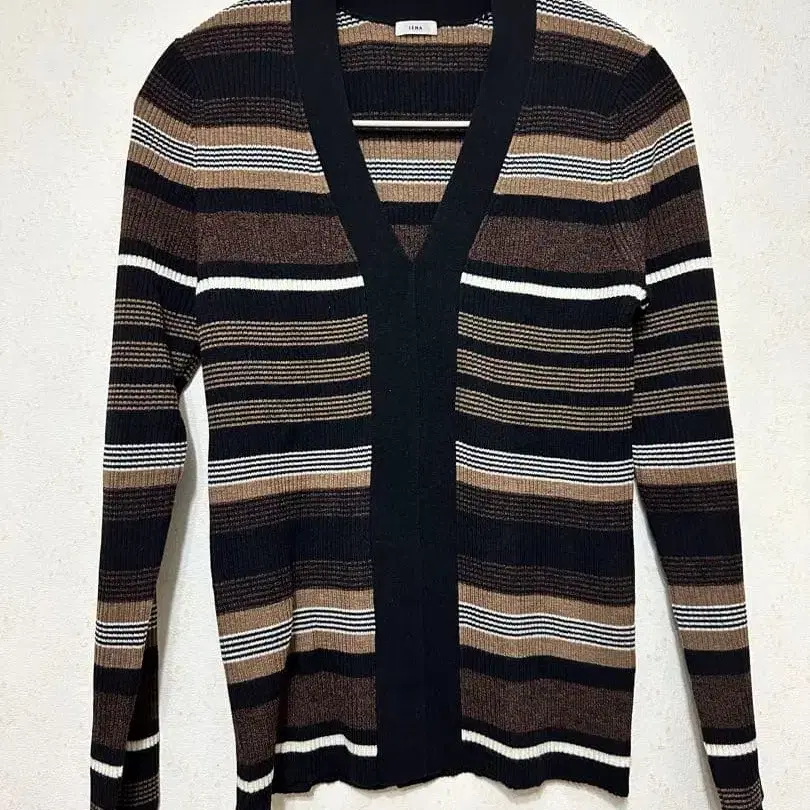 IENA 3x3 리브 V넥 풀오버 멀티 보더