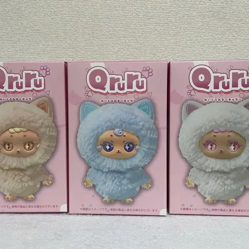 Qruru 고양이 귀 후드 부착 캐릭터 키링 3세트