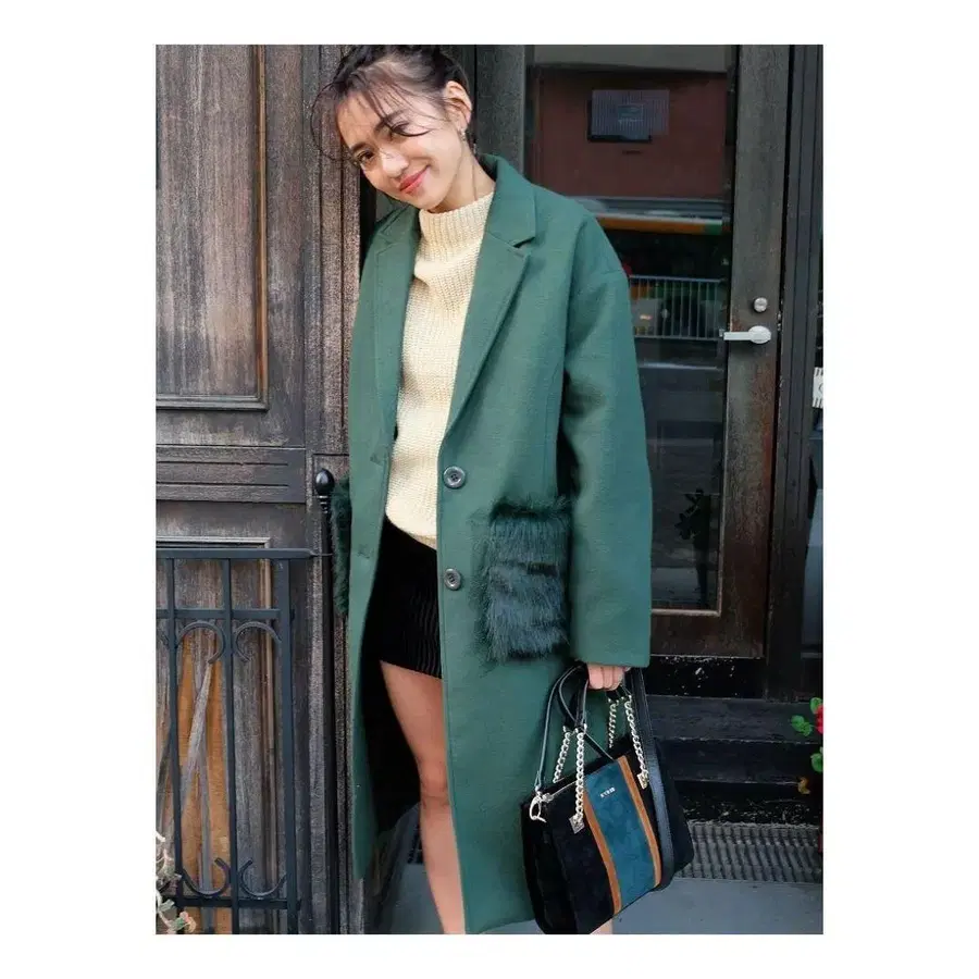 자동 번역되었어요. 원문보기퍼가 달린 포켓이 특징인 그린 롱 코트.