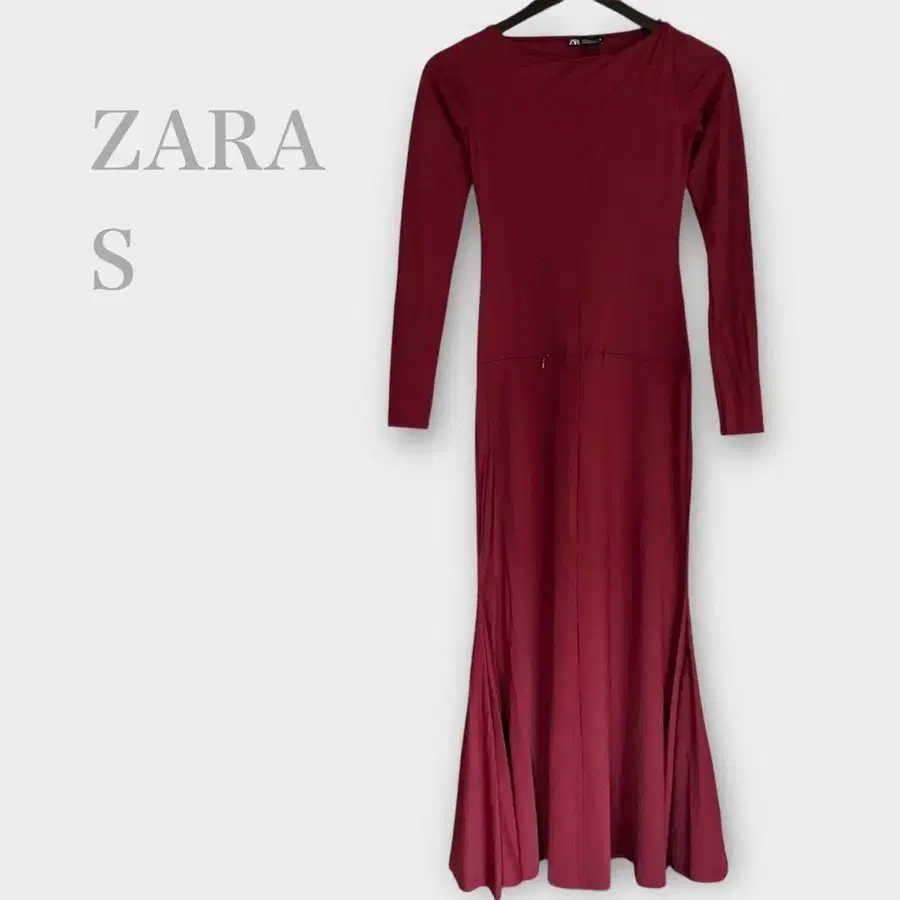 미사용 새상품 자라 롱 플레어 원피스 긴팔 레드 S