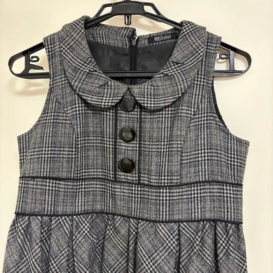 마우스 밸리 슬리브리스 무릎 기장 원피스 그레이 체크 울