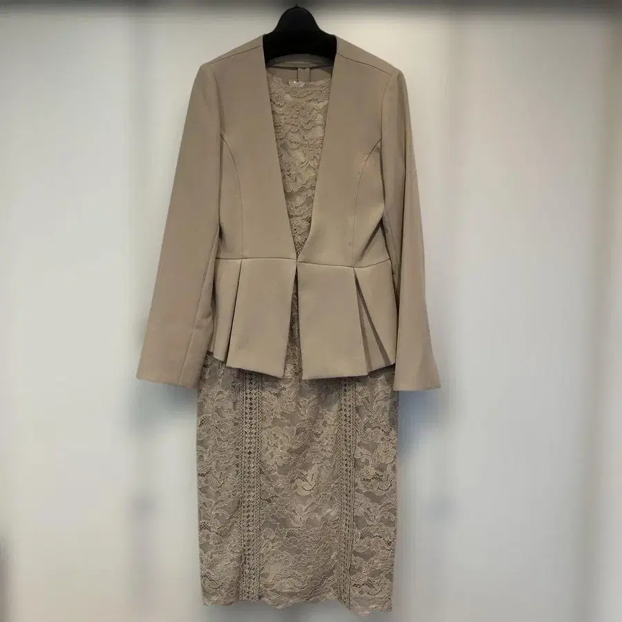베이지 테일러드 자켓 레이스 스커트 세트