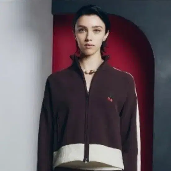 택 포함 새상품 더블 스탠다드 클로징 체리 로고 지퍼 니트