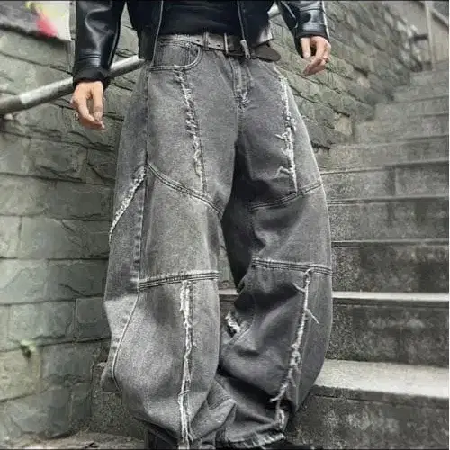 남성용 무지 데님 점프수트, 루즈핏 캐주얼 데님