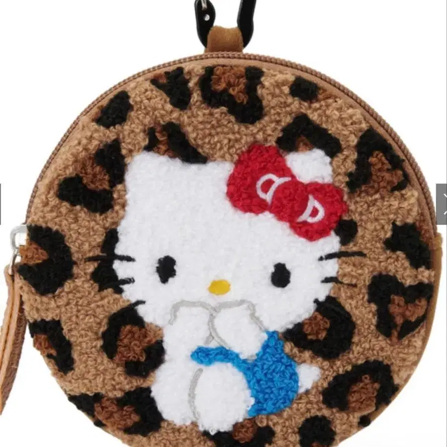 산리오 헬로키티 레오파드 무늬 사가 서클 파우치 카라비너 포함
