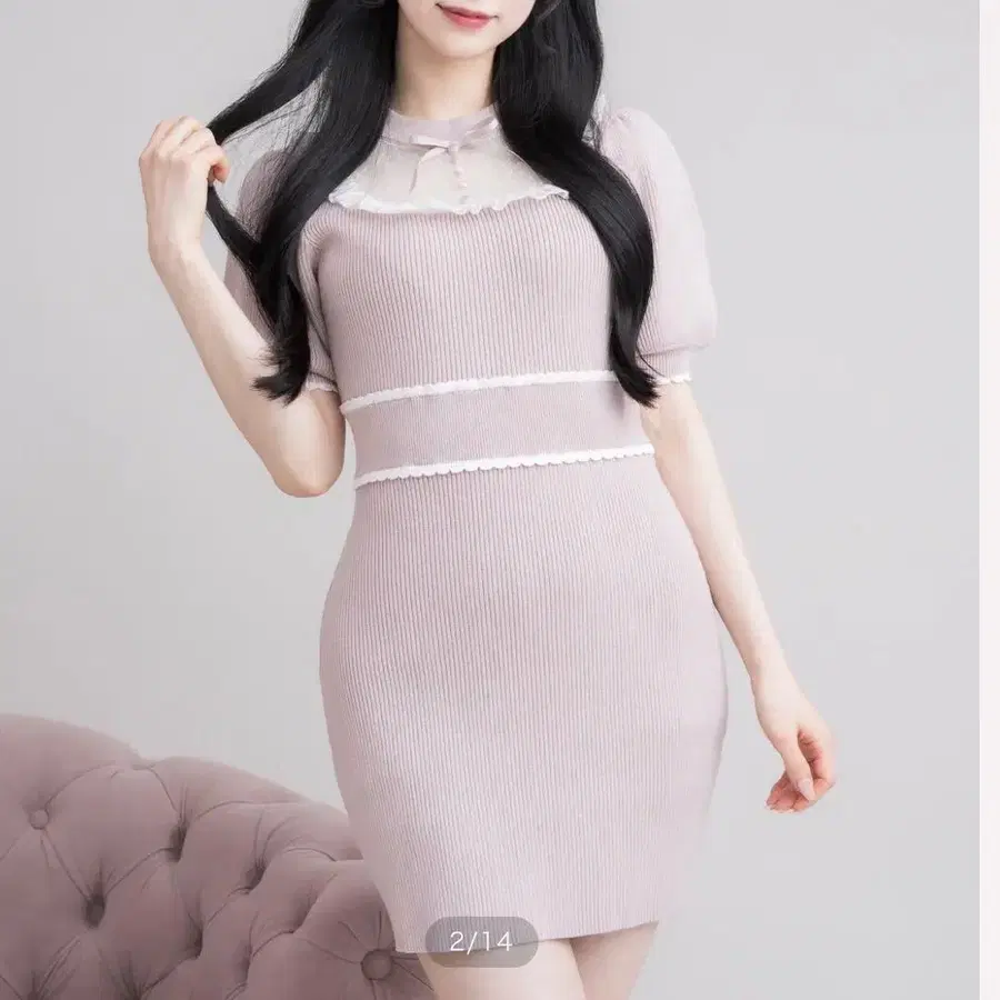 • 새상품 Darich 다리치 리본 퍼 플레어 니트 미니 원피스