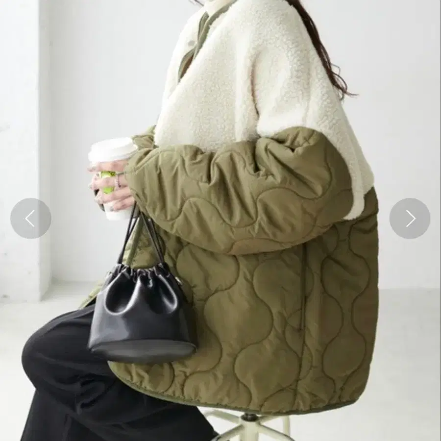 DISCOAT 보아 절개 퀼팅 코트 카키 M 사이즈