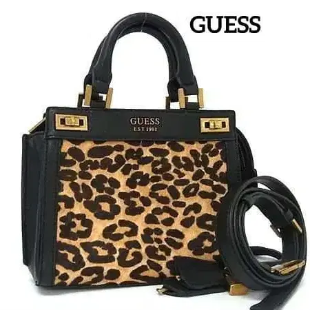 극미품 게스 송치 x 가죽 레오파드 표범 무늬 2WAY 숄더 핸드백