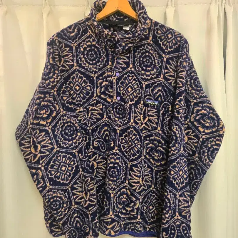파타고니아답다고밖에 말할 수 없는 절묘한 패턴과 베이스 컬러인 네이비와의 컬러링이 균형 있게 어우러져, 최근 빈티지 시장에서도 매우 인기가 높고 가격도 폭등하고 있습니다.